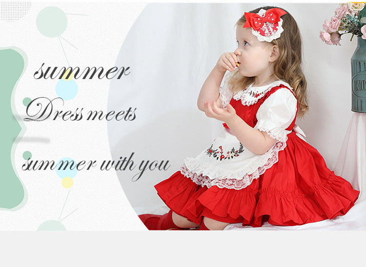 Fox Puff Sleeve Dress Girls One-year-old Princess Dress Lolita Retro Court Wind Tutu Skirt